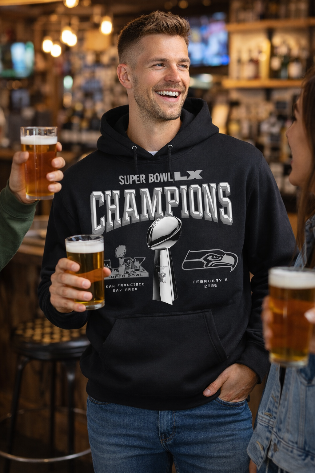 Seattle Black Super Bowl LX Champions Fleece Hoodie