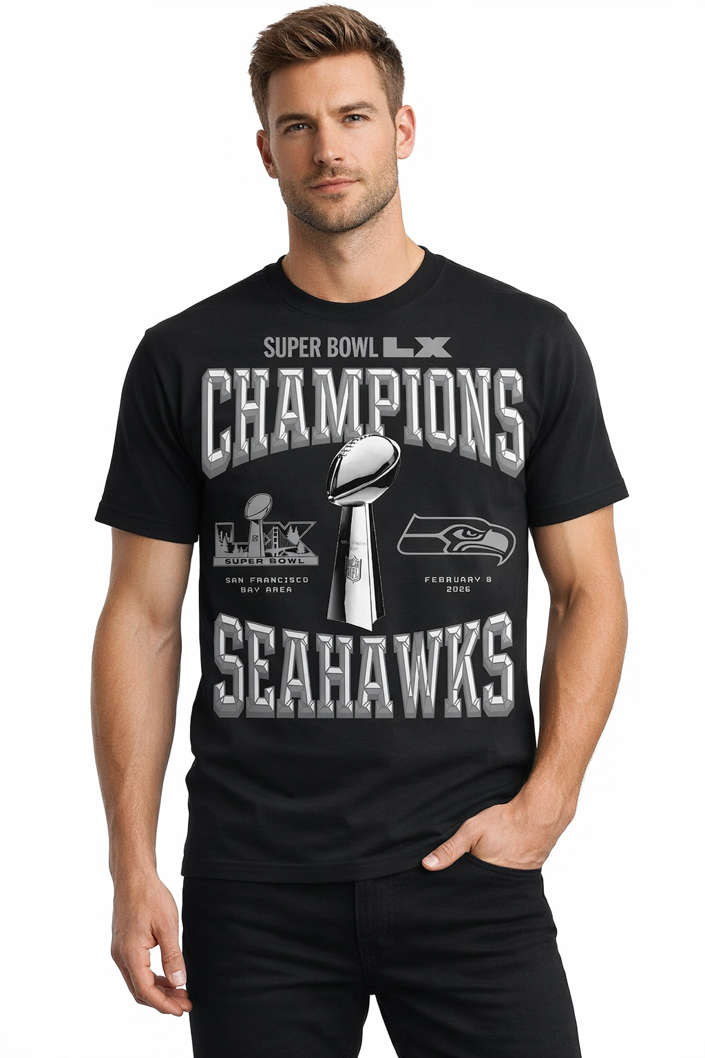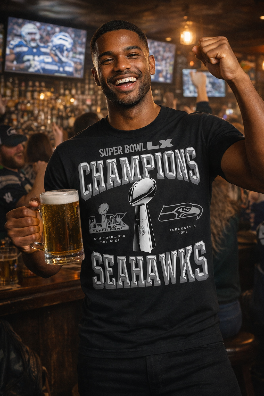 Seattle Seahawks Black Super Bowl LX Champions T-Shirt