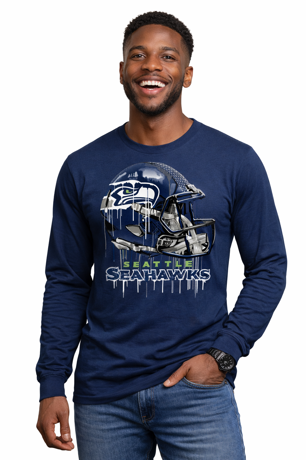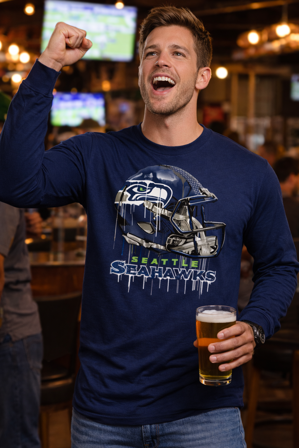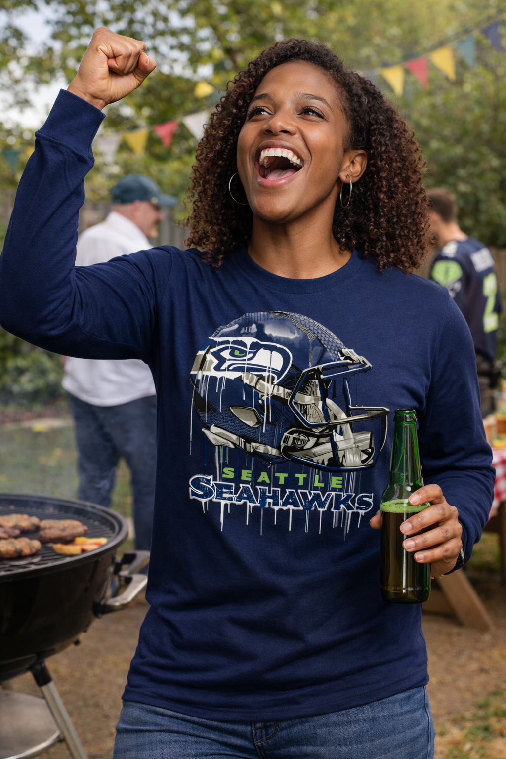 Seattle Seahawks Navy Dripping Helmet Long Sleeve T-Shirt
