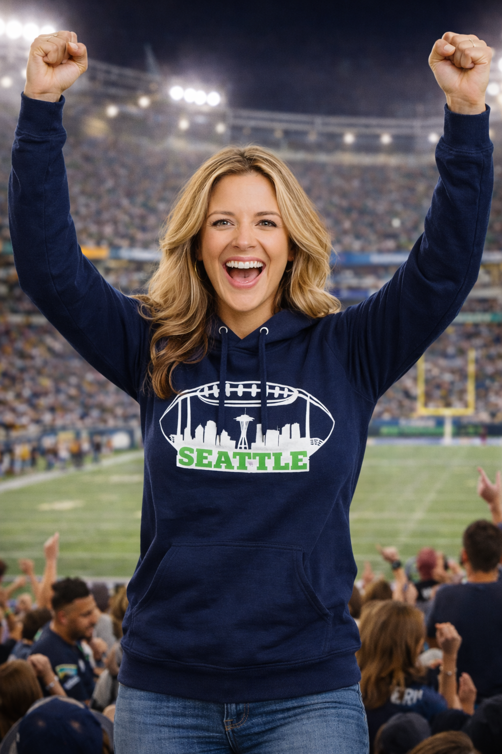 Seattle Seahawks Skyline Navy Fleece Hoodie T-Shirt